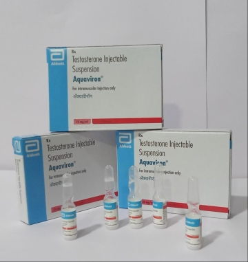 Aquaviron 25 mg Injection is a testosterone-based injectable medication primarily used for the treatment of male hypogonadism, a condition where the body fails to produce adequate amounts of the male sex hormone testosterone. Manufactured by Abbott India Ltd., this injectable form of testosterone helps restore hormonal balance in men, improving energy levels, muscle mass, libido, and overall vitality.