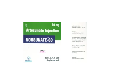 Norsunate-60 is a fast-acting Artesunate Injection (60 mg) formulated for the effective management of severe malaria. Manufactured under strict quality standards by ENORMMED Pharma, it ensures rapid parasite clearance and improved clinical recovery. Suitable for both intramuscular (I.M.) and intravenous (I.V.) use, this single-use vial is designed for precision, purity, and safety.