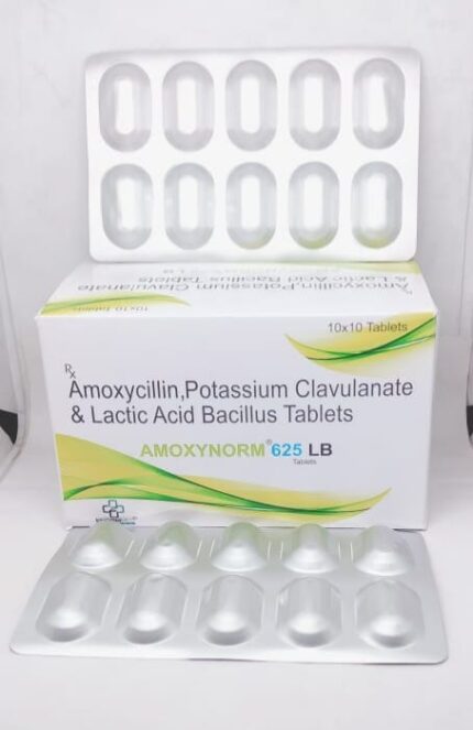 Amoxynorm 625 LB Tablets (Amoxicillin, Potassium Clavulanate & Lactic Acid Bacillus) 1 Box 100 Tablets